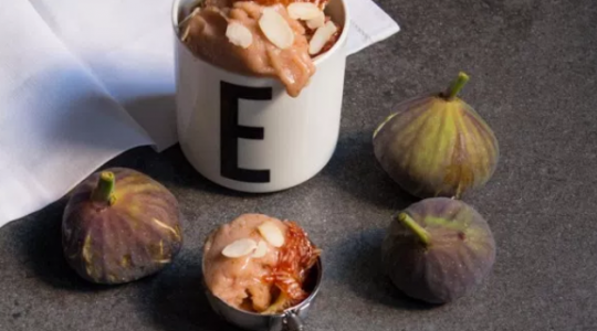 6Servite il vostro gelato con dei pezzi di fichi tagliati e mandorle a lamelle.